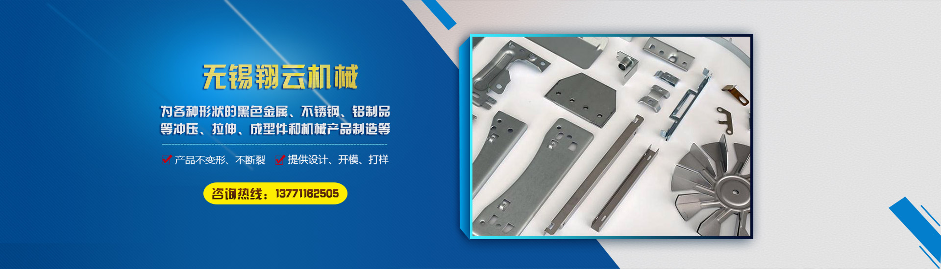無錫翔云機械制造有限公司為一體的專業工廠,翔云機械廠自有設計制造及開模能力,主要生產為各種形狀的黑色金屬、不銹鋼、鋁制品等沖壓、拉伸、成型件和機械產品制造等。